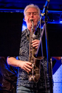 Yesterday’s lineup with Suzanne Higgins – tsax; Andy Schofield – asax; Martin Jůzl – trp; Libor Šmoldas – g; Taras Voloschuk – b; Ben Hague – dr. was again everything that I and an almost sold out Jazz Dock came to listen to, and as it happened this was the 150th concert BAD have performed since their start in February 2019, so a small celebration evening for the band also.