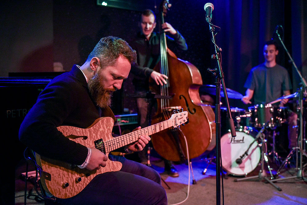 Libor’s rhythm section for last night was in spite of their young age almost mind blowing, Matej Štubniak – b; Tomáš Zelený – dr, thats names you should put in your memory box. Tomas with his modest style might fool you for a while, that is, until he starts playing. His skill and touch for the music he makes would make much more experienced drummers just go quiet. Matej on the bass, in style totally opposite with a way to immerse himself into his playing and with a brilliant technique, he was also more than great. Tomas and Matej formed a team that one should have believed had been playing together for years.