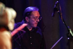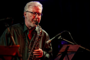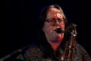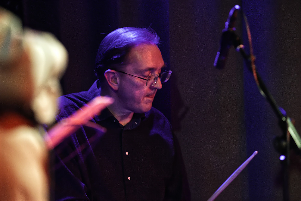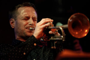 I don’t mind that I saw them recently. First of all, they are simply that good. Secondly, with BAD, you never quite know what the lineup will be, which means every gig is a brand-new experience. Last night’s ensemble featured: Benjamin “Ben” Hague (dr), Libor Šmoldas (g), Martin Juzl (tr), Taras Voloshchuk (b), Andy Schofield (sax), and Suzanne Higgins (sax), with guest star Kosma Busheikin (b).