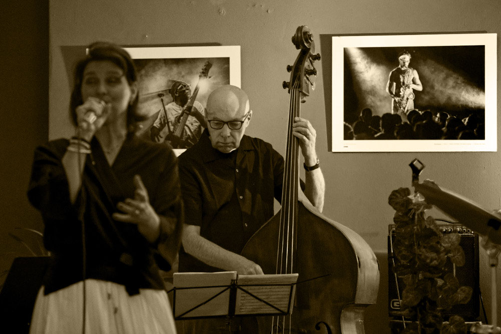 have already noticed the black and white photographs in the background of my pictures. Yesterday the Jazz World Photo 2025 exhibition opened in the same premises as the concert was held. Absolutely brilliant photographs that don’t only sound like jazz, they are jazz. Yesterday they were understandably overshadowed by Markéta Foukalová Folk Q, but if you have time, go and take a look.