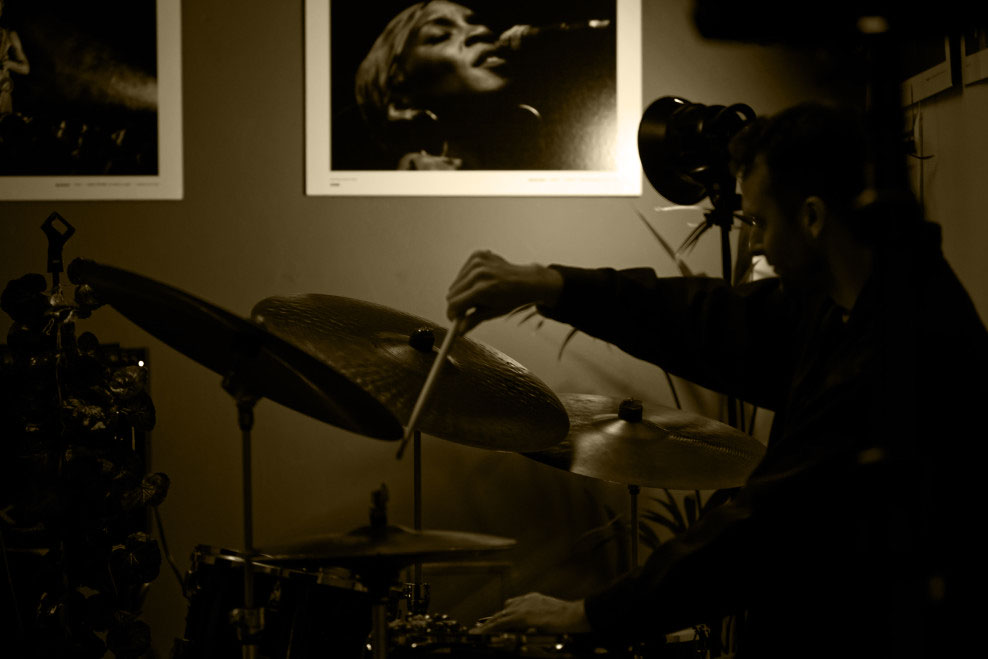 Marek behind his drums making sounds that goes true your whole body and you wonder how, because the man hardly moves, and yet you feel the beat like he was playing inside you…
