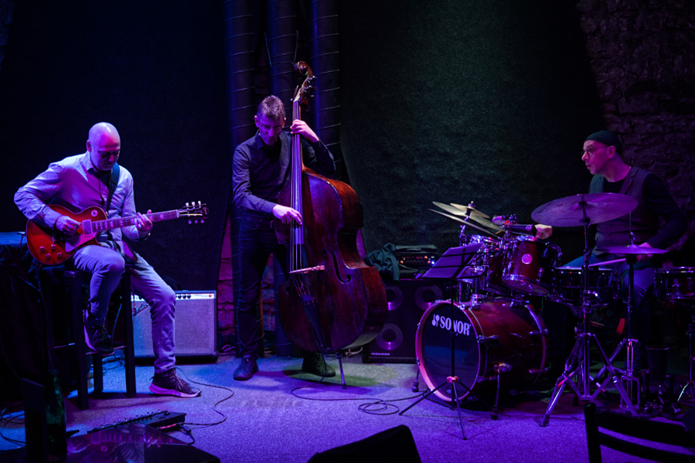 Hand Adam Tvrdý a Les Paul, Petr Dvorský a double bass, and place Jiří Stivín Jr. behind the kit, and you get the powerhouse known as the Adam Tvrdý Trio. This energetic, intense, and melodic group commands attention from the very first note—a fact once again proven to the delight of the crowd last night at AghaRTA Jazz Club. You don’t have to take my word for it; just ask anyone in the audience, whose enthusiastic response made it clear they loved every minute of the two-set performance.