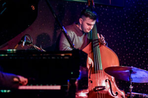 Tomáš Zelený Trio, Tomas Zeleny – dr; Mikuláš Pokorný – p; Pavol Mojto – b, I’m convinced that this will not change for some time. Yesterday’s trio represented the new, upcoming generation in the Czech jazz world. They are technically very skillefulled, like most of the professional musicians in this country, something we all seem to forget every now and then, since to us this is so self-evident. They often have a little different approach to their music and performance. Last night took us to a journey with a successful combination of standards and Tomas originals, which I hope we will hear more of in a near future, all presented in a laid back, melodic and stylish way, and of course all done very skilfully as I already mentioned. And most important, there was that little touch to their musical approach, the one you can’t explain or learn in school!
