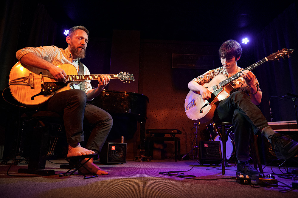 Libor is a major reason why I consider Prague the European capital of jazz; Adam Doucha is a major reason why Prague will remain the European capital of jazz. The sounds Adam coaxes from his six-string are clean, soft, and melodic. His improvisational skills are brilliant—he seldom loses his way; quite the opposite. He also possesses a healthy sense of self-criticism, something I’ve noted before, as this wasn’t my first time hearing him play.